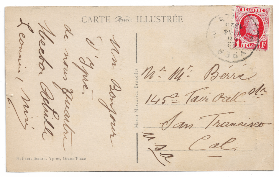 Notice that little pink oval logo under the photograph? Postcards sold under the trademarked name "Marco" are the invention of a man with a fascinating story: Marco Marcovici. From the turn of the century until the late 1920s, he ran a Belgian collotype studio (simple mass-produced color photos), producing images of local color, you might say, in the form of scenic postcards ("carte illustrée"), like this portrait here.